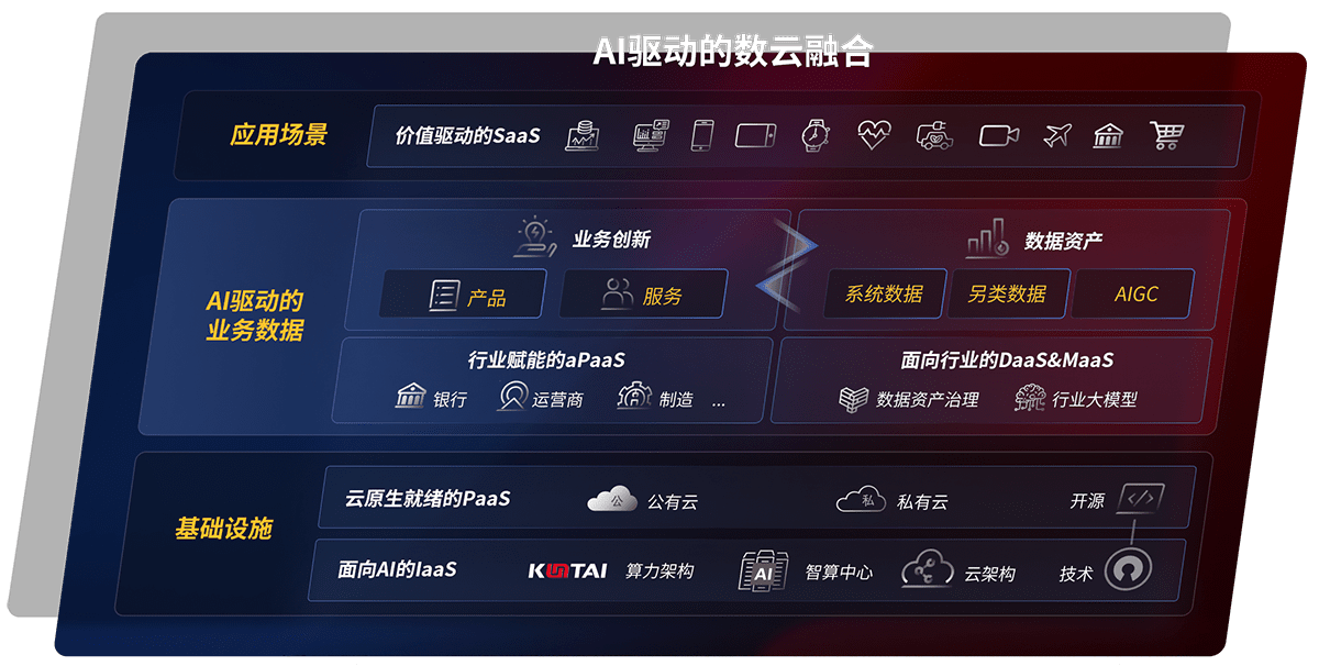 以天辰平台鲲泰全国产化计算产品帮助金融行业客户构筑数字底座;以丰富的AI和数云产品及方案,,,,保障数据安全,,,挖掘数据价值,,,,提升服务品质